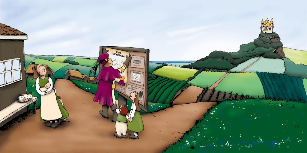 In this delightful and lively story, the adults and children of the Kingdom of Niceria, both royal and common, struggle to accomplish the rescue of someone who’s fallen down a deep, dark well. Thanks to a wise king and a special gift he gives to every child in the kingdom, and to three children who step forward in courage, a profound idea is born.